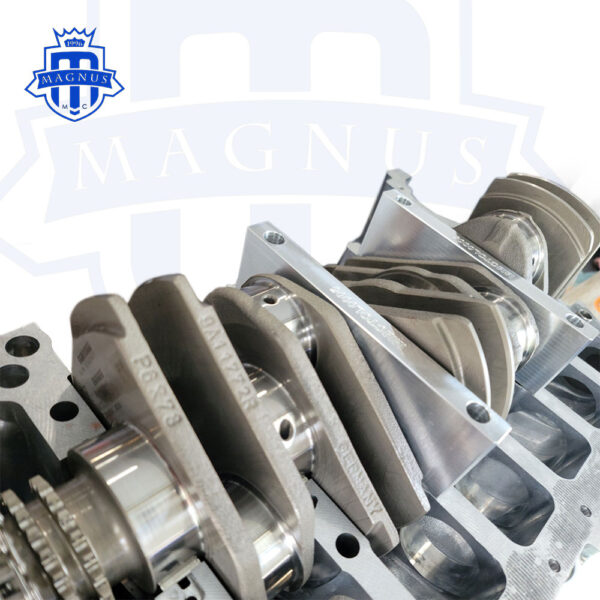 The Magnus Porsche 9A1 Crankshaft Main Tool (retaining bridge) mimics a main cap for the Porsche 9A1 boxer engine. It allows the engine builder to hold the crankshaft in place during assembly and allows the builder to temporarily bolt down the crankshaft and manipulate the engine as he pleases while still allowing the crankshaft to rotate. You cannot damage the surface of the crankshaft as our Main cap tool /retaining bridge accepts an old main bearing, allowing smooth rotation of the crank if needed to check rod and piston clearances. This allows the engine builder to work on a bench as opposed to an engine stand, for assembling the first half of the engine.